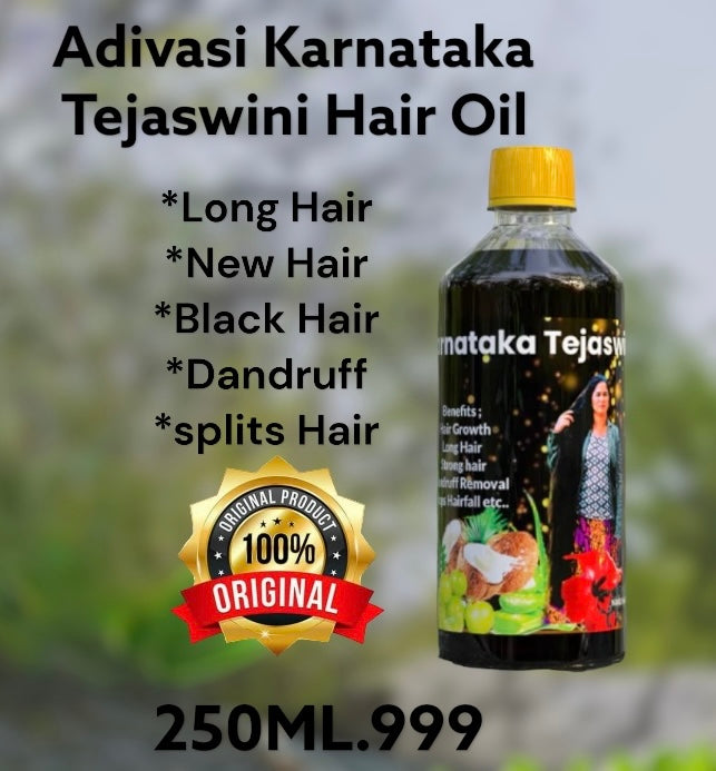 - The Adivasi Karnataka Tejaswini Ayurvedic Hair Oil is basically made by pure Adivasi ayurvedic herbs which is effectively prevents the hairs fall and helps to grow long hairs with no side effect.